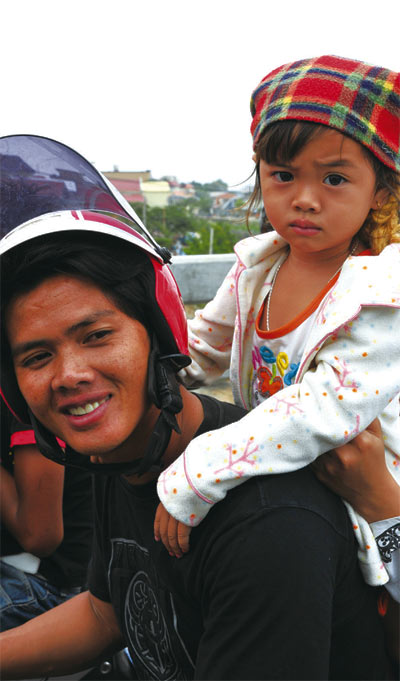这里的街道并不宽敞,虽然车不多,但经常堵车。最多的交通工具是摩托,各个年龄段的男子或女子,带着家人、朋友、孩子,穿梭于街道上。推着手推车卖零食的小贩,抬起胳膊用袖子擦去脸上的汗水。或年轻或年长,皮肤黝黑的小伙子,骑着当地特色的嘟嘟车,在路边揽客。