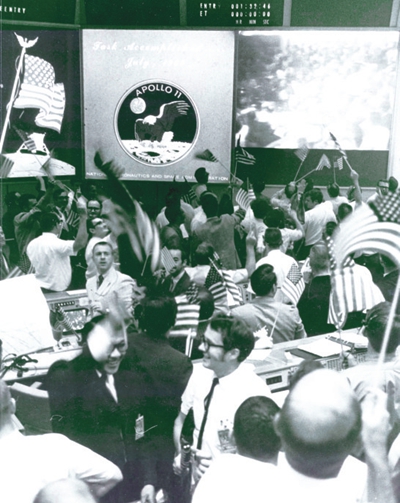 “阿波罗11号”登陆月球成功后,控制中心内一片欢腾。