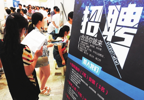 7月29日,求职者在江苏省连云港市夏季人才交流大会上了解招聘信息 图片来源 CFP