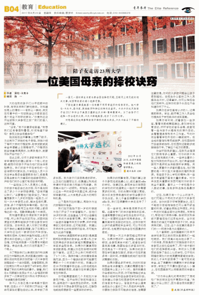 下面这篇文章是美国一位有着不同寻常经历的母亲写的。她叫劳伦·卡夫卡,是作家、英语教师和持证的烤肉品鉴师。卡夫卡的龙凤胎孩子在2017年毕业于美国贝塞斯达沃尔特·惠特曼高中。为了给孩子们选择一所合适的大学,卡夫卡跨越美国,走访了23所大学。