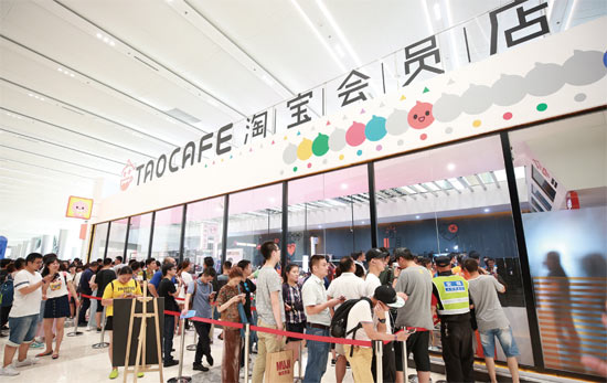 7月7日,浙江省杭州市,顾客慕名到阿里巴巴推出的无人店“淘咖啡”体验。