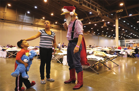 红十字会等组织与政府合作,为4.2万名灾民提供了避难所,还有牧师开放其所属的教会场所。除了提供食物、洗澡和睡觉的地方,避难所还能为灾民理发,提供医疗、上网和手机充电服务,甚至有员工扮成卡通人物陪孩子们玩耍。在非营利机构“Baker”的避难所,前来做义工的人数超过了灾民。