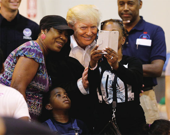 常被口诛笔伐的特朗普对此感到十分受用。据“美国之音”电台报道,他在热情洋溢又简单直白的演讲中说:“感谢大家,我想说我们爱大家,你们真棒。我们来这儿控制灾情,一切都很顺利。感谢你们来到这里,我们会很快让你们回家,现在就立即行动……这是历史性的灾害,但我跟你们讲,它发生在得州,而得州人是摊上什么大事都能摆平的。”