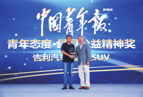 活动现场,中国青年报社副总编辑翁翔为吉利远景SUV颁发了该奖项。