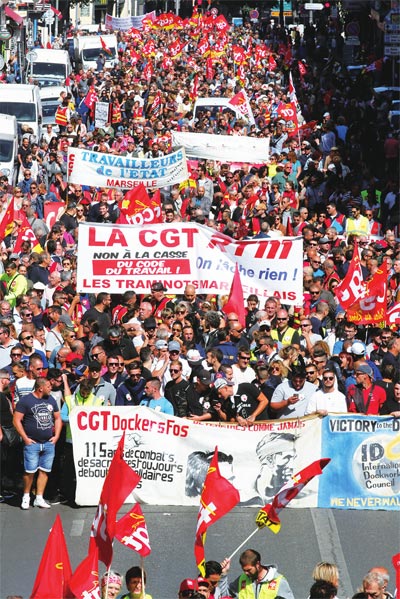9月8日,马克龙高调宣布他拥有绝对的决心,“将坚定地推行劳动法改革,绝不向懒汉、厚颜无耻者和极端分子妥协”。此言一出,立刻在法国激起千层浪,反对者纷纷在推特网上将他与美国总统特朗普进行对比。在12日的游行中,不少人高举“懒人出行”、“马克龙你完了,懒人们都上街了”等标语。