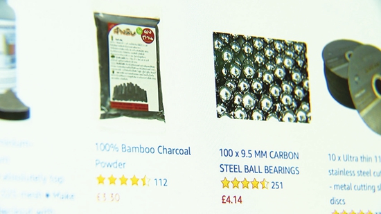 英国法律允许消费者在网上购买少量化学物质,但这些材料经常会被亚马逊打包推荐。这意味着,只要了解基本化学原理,任何人足不出户即可凑足制造简易炸弹的全部材料。