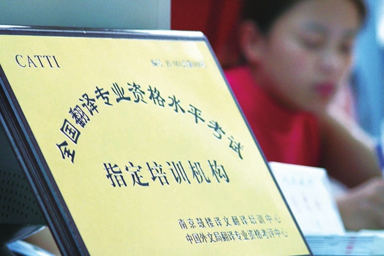 2010年,南京一家外语培训机构挂出“全国翻译专业资格水平考试指定培训机构”的铜牌。