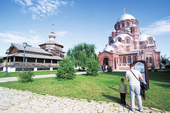 在离喀山60公里,斯维亚加河与伏尔加河的交汇处,是斯维亚日斯克岛镇。这座岛城古堡为伊凡雷帝在16世纪所建,目的是为攻克喀山作军事准备。普希金的童话故事来源于斯维亚日斯克岛的生活。目前,小岛上居民不到300人,有37个文化遗址。岛城建筑群中包括几个独特的保存完好的教堂,比如伏尔加河流域最古老的木式三一教堂,该教堂于1551年用一天时间完工建成。