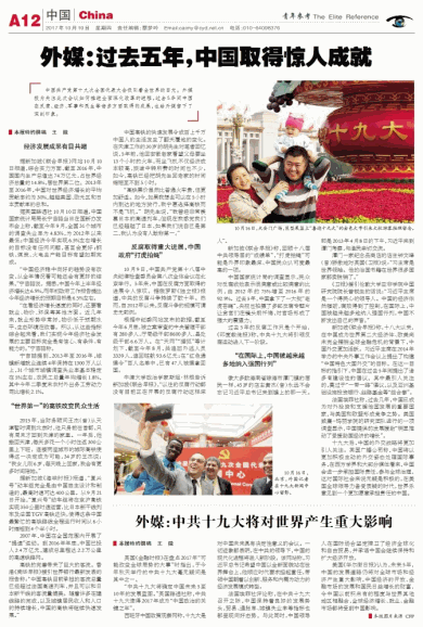外媒:中共十九大将对世界产生重大影响