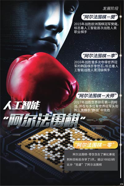 如果说索菲亚的任务是跨越“恐怖谷”(人类对似人而非人的物体产生恐惧),那么“阿尔法零”的使命就是将人工智能提升到新高度。10月18日,谷歌人工智能团队DeepMind在美国《自然》杂志上发表论文,宣布新版阿尔法围棋-零(AlphaGo Zero)足已彻底摆脱人类的知识水平:它没有研究棋谱,仅仅在了解比赛规则和目标后自学了3天,就以100比0的比分“完虐”了阿尔法围棋(AlphaGo),而后者曾彻底击败世界顶级围棋棋手李世石和柯洁。