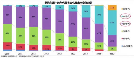 有调查显示,2017年上半年,中国80后新购车用户占总体份额达到48%,较2015年最高峰减少7%;与此同时,90后新购车用户份额则从2015年的14%增长至目前的26%。这种变化仍在迅速发生。