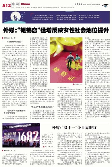 外媒:“姐弟恋”猛增反映女性社会地位提升