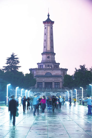 11月13日晚,长沙市湖南烈士公园烈士塔下,有市民在跳舞。