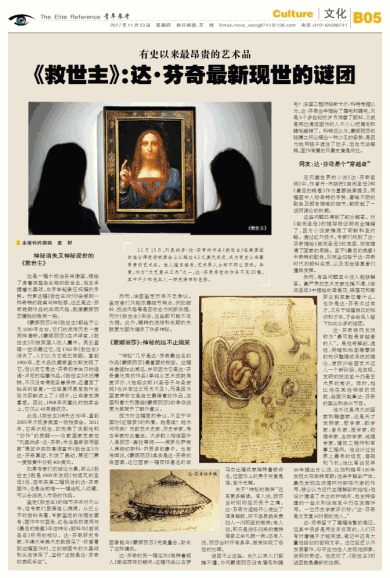 达·芬奇留下了篇幅浩繁的笔记,但其中很多是用左手反写的,人们只有对着镜子才能阅读,笔记中还有大量他自创的密码文字。这位巨匠从不发表著作,似乎生怕世人发现他探索、发明的奇迹。他成功了,《救世主》的谜团就是最新的注脚。