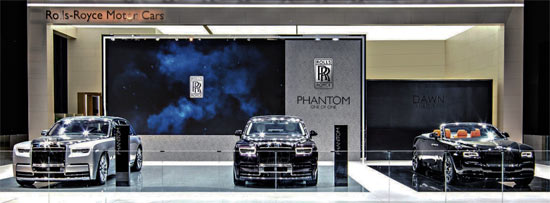 本报讯 11月17日,超豪华汽车品牌劳斯莱斯旗下全新幻影、超豪华敞篷车曜影Black Badge,首次共同亮相广州车展。作为世界顶级汽车品牌,劳斯莱斯最近几年在其全球最大市场中国,践行着品牌年轻化战略。