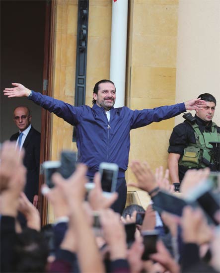 22日,哈里里如约出席了黎巴嫩首都贝鲁特举行的盛大阅兵活动。下飞机后他直奔父亲的陵墓拜谒,之后返回总理官邸。随后,他与奥恩总统进行会谈,表示自己暂时不辞职了。路透社称,这是出于总统的要求。