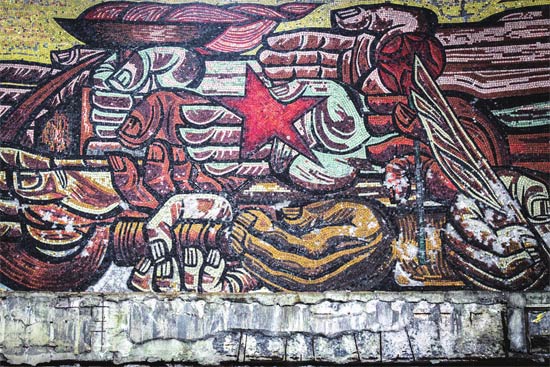 西方媒体经常把布兹卢达纪念碑贴上“苏式建筑”的标签,但在当地人看来,它是一次伟大的练习,表明保加利亚的建筑风格摆脱苏联影响而重获自由。550平方米的室内镶嵌画体现了对特定时代的颂扬,但关键在于,布兹卢达庆祝的是保加利亚的东西。“这是保加利亚的万神殿,”斯托伊洛夫强调,“而不是苏联的纪念碑,它和苏联没有关系。”