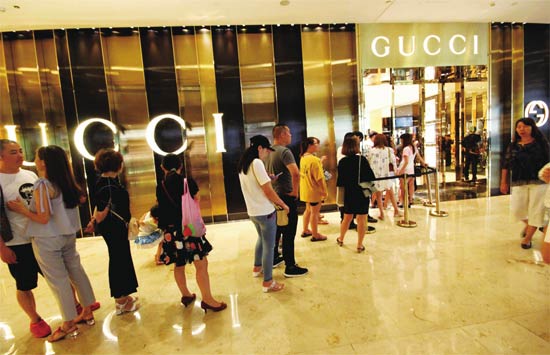 6月25日,南京某商场一奢侈品牌专卖店前,顾客排起了长龙。图片来源CFP