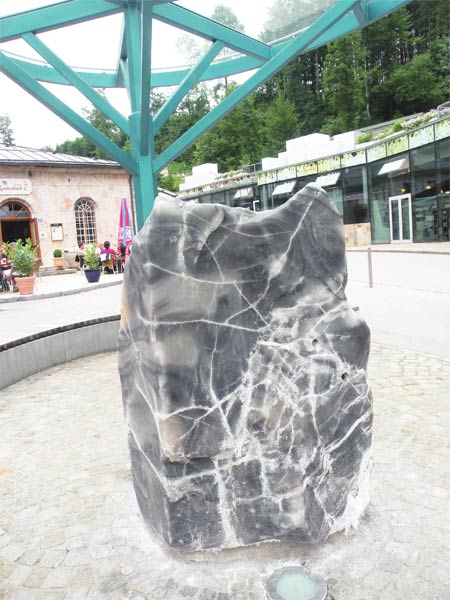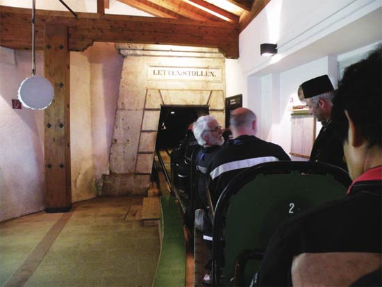 小火车终于到达矿井底部,空间豁然开朗,这里就是矿井的内部。哈尔施塔特的盐矿形成于远古的地壳变化时期,这里本是一片汪洋,地壳变化使阿尔卑斯山迅速由两侧隆起,将这片海洋夹在中间。沧海桑田,若干年后,水分蒸发,海洋已不复存在,盐分却保留在阿尔卑斯山体里,让这里成为一个巨大的盐矿。