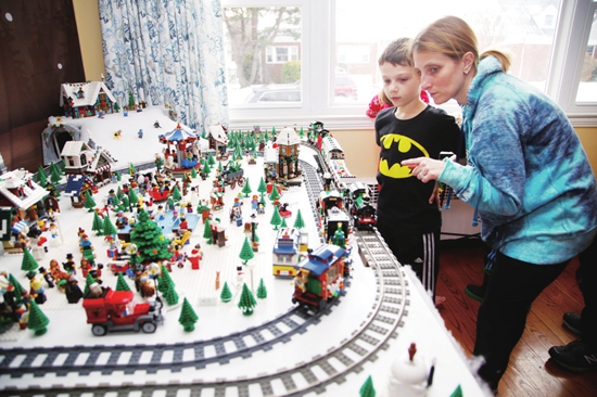 今年圣诞节前夕,美国洛杉矶的一家“乐高迷”展示节日题材的作品。