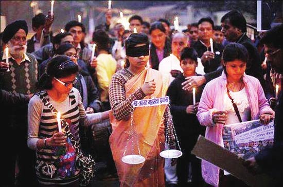 印度民众抗议针对女性的暴力犯罪。被印度社会默许的天价嫁妆现象令女孩被视为“赔钱货”,造成了许多虐待妻子的悲惨案例。