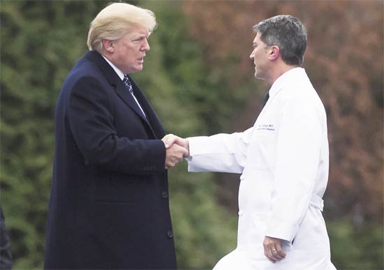 “总统身体状况极佳,头脑非常敏锐。”据美国有线电视新闻网(CNN)报道,在最近的记者会上,白宫“御医”龙尼·杰克逊用一堆体检数据为特朗普的健康状况背书:身高190.5cm,体重108.3公斤,心率每分钟68次,无吸烟与饮酒史,血压正常,认知能力正常……