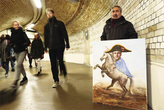 1月18日,政治艺术家卡雅·马尔在英国伦敦展示法国总统马克龙的画像。舆论认为,德国政局不稳给了马克龙成为“欧洲新领袖”的机会。