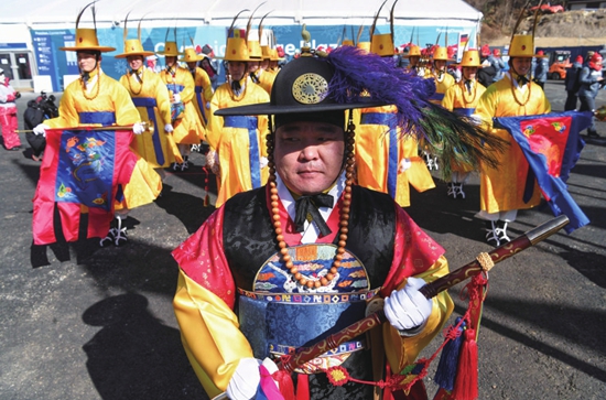 2月6日,平昌奥运村为各国代表团举行欢迎仪式。图片来源 CFP