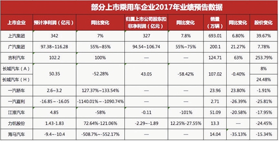 2017年,中国车市结束了连续多年的高速增长,“微增长”下车企的淘汰赛不断加剧,这从上市车企2017年度的业绩中也能看出来。