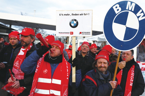 2月2日,德国金属工业工会针对汽车行业的罢工活动规模进一步扩大,预计有30万工人参加罢工。参与罢工的工人来自包括戴姆勒、宝马、保时捷、奥迪、大众等德国主要汽车生产商,以及博世、舍弗勒、采埃孚等多家汽车零部件公司。