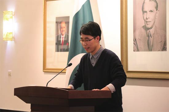 本文作者在巴基斯坦驻华大使馆参观时,代表外交学院时事研究会向使馆致感谢辞。