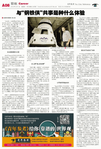 “SpaceX是我工作过的唯一一家拥有粉丝团的公司。”勃姆自豪地说,“只要我穿上带有SpaceX标识的任何衣服出现公共场所,人们就会主动跟我搭讪。这份工作带给我的满足感没有别的任何公司可以相比。”