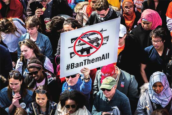 3月24日,华盛顿特区和纽约等多座城市同时举行反枪支暴力运动“为我们的生命游行”,媒体称有上百万人走上街头呼吁控枪。演讲者中包括马丁·路德·金的孙女、9岁的尤兰达·蕾尼·金,她引用了祖父的名言。“我有一个梦想,那就是枪支暴力应该停止。这本应是一个无枪的世界。”尤兰达说。