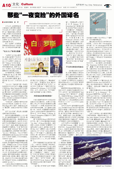 创刊于1930年、每年都要评选世界企业500强的Fortune杂志在中国长期被译为《幸福》,光看名称还以为是生活类刊物。直到它1996年开始发行中文版、官方定名《财富》,错误译名才走入历史。美国的Mayo Clinic更倒霉——这家拥有3家分院、5万多员工的世界著名医疗集团被译为“梅奥诊所”,很容易让不熟悉的人忽视它的精湛医术。
