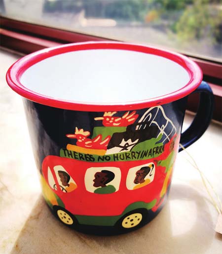 经此一役,我的忍耐力得到了巨大的磨练,还专门买了个杯子,上面写着“There is no hurry in Africa(在非洲,万事不急)”。