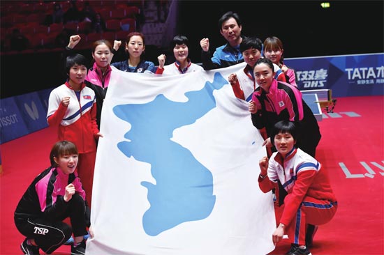5月3日,本应在世界乒乓球锦标赛团体赛四分之一决赛中对决的朝韩双方突然宣布组建联队,携手共赴半决赛。国际乒联当即宣布支持,各国纷纷为半岛的“乒乓外交”送上祝贺。