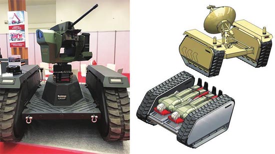 操作人员通过10英寸触摸屏LCD控制面板进行远程遥控,也可以通过卫星同时控制多部车辆。UKAP采用油电混合动力系统。其中,动力电池的工作时间是5个小时,发电机能连续运行8个小时,车辆最高速度为25公里/小时。
