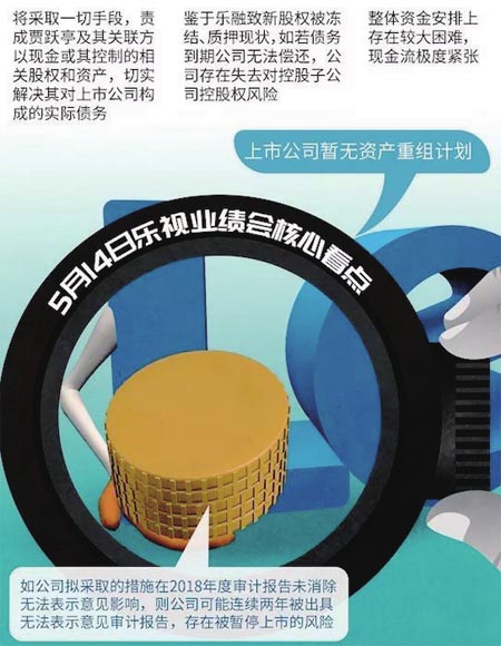 2017年,乐视网年报巨亏138.8亿元,立信会计师事务所对此出具了“无法表示意见”的审计报告。按照今年一季度的表现,乐视网今年很有可能也会遭遇同样状况。根据《深圳证券交易所创业板股票上市规则》有关规定,出现近两年的审计报告对公司为否定或者无法表示意见,深交所可以决定对公司暂停上市。