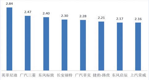 其中,英菲尼迪的库存深度达2.84个月,捷豹路虎的库存深度达2.21个月。