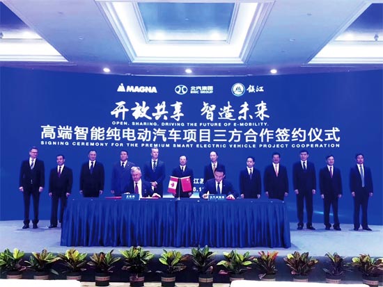 6月18日,北京新能源汽车股份有限公司(简称“北汽新能源”)与麦格纳在江苏南京签订合作协议条款清单,双方宣布拟成立合资公司,开展高端智能纯电动车共享平台的开发及根据客户需求进行具体车型产品的定制,并提供新能源汽车工程服务。
