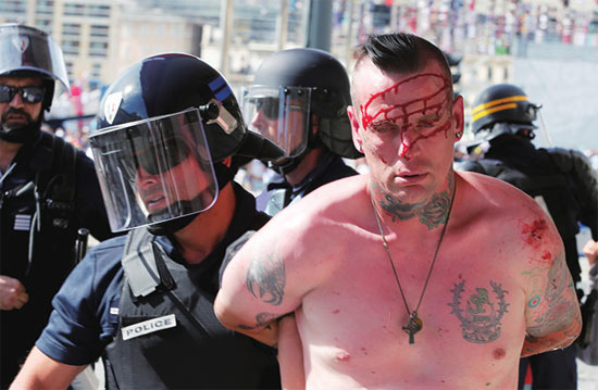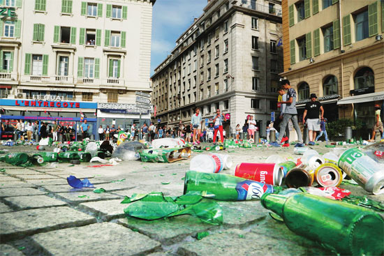 2016年6月11日,英国球迷和俄罗斯球迷爆发冲突,令法国马赛街头一片狼藉。本版图片来源CFP