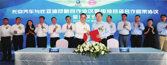 7月5日,长安汽车与比亚迪在深圳签署战略合作协议,双方将联合设立以新能源动力电池生产、销售为主营业务的合资公司。