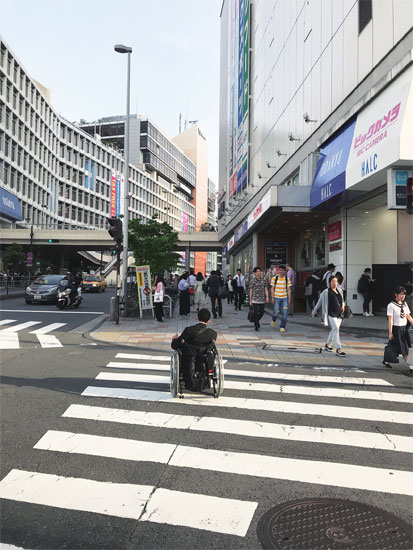刚到日本那天,在地铁站里我遇到了一位盲人。和周围的上班族一样,他穿衬衫打领带,穿梭在地铁里。他头扬得高高的,走得飞快——日本的盲道实在太明显了。而且在日本,社会有这样的共识:盲道是视力障碍者的出行通道,健全人是不会且不应该占据的。