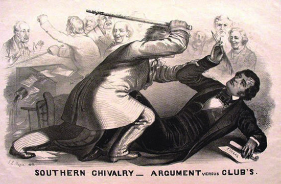 1840年以前,任何反对奴隶制的言论在美国南方都是违法的,民众并不清楚上层的分歧。然而,当立法者们开始仔细讨论这个问题时,矛盾就压不住了。“北方佬不喜欢决斗,南方佬认为他们是胆小鬼。用弗里曼的话说,这导致‘欺压’盛行——南方佬能动手绝不动口,以为北方佬会屈服于铁拳之下。另外,担心失去‘财产’(黑奴),也促使他们成为更崇尚暴力的一方。”美国《纽约时报》称。