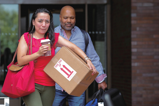 7月23日,《纽约每日新闻》报宣布编辑部裁员一半,被裁员工离开报社。图片来源 CFP