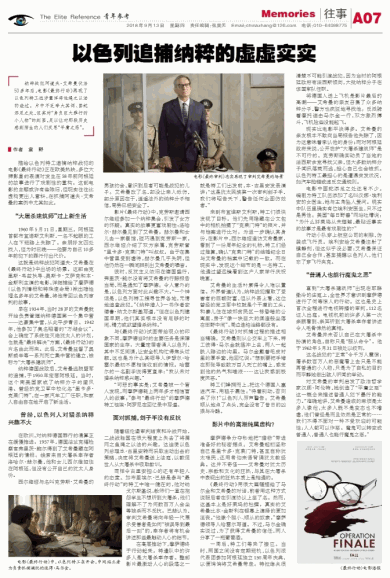 描绘以色列特工追捕纳粹战犯的电影《最终行动》正在欧美热映,多位大牌影星的表演对发生在58年前阿根廷的故事进行了戏剧性的重构。这部电影的主题或许有些陈旧,但现实往往比虚构更出人意料,在抓捕阿道夫·艾希曼的案例中尤其如此。