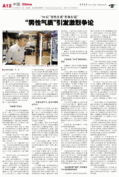 从数年前的“韩流”开始,对“花美男”的欣赏渐渐成为中国娱乐圈的主流。即使如此,网上对“娘炮”和“小鲜肉”的骂声仍不绝于耳。