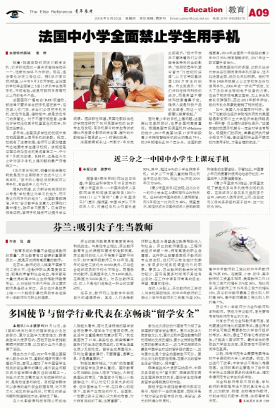多年来,法国很多学校的校规中有在校园里禁止使用手机的条款。现在,校规有了法律依据,老师可以更加理直气壮地要求学生遵守校规。该规定是法国总统马克龙的竞选宣言之一,于今年7月成为法律。RFI称,这是迄今为止针对孩子手机上瘾问题的最严厉措施之一。