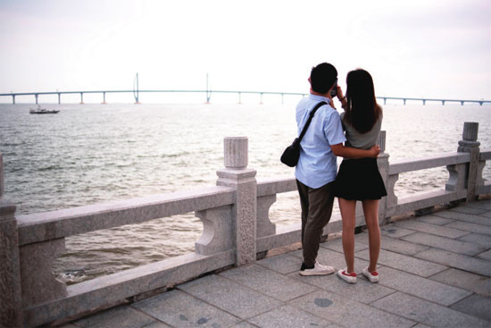 10月22日,广东珠海,民众对着即将通车的港珠澳大桥拍照留念。