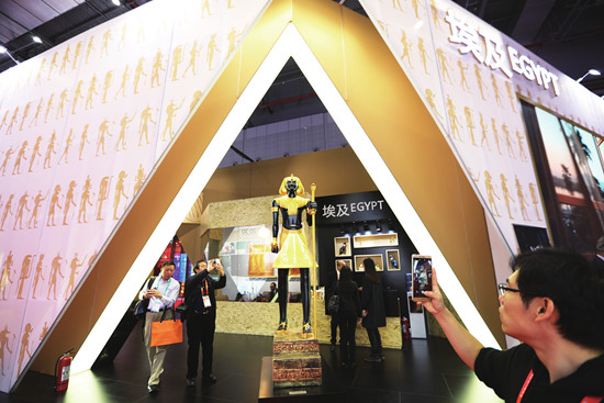 11月5日,中国首届进博会上的国家展埃及展区吸引了许多观众。图片来源 CFP